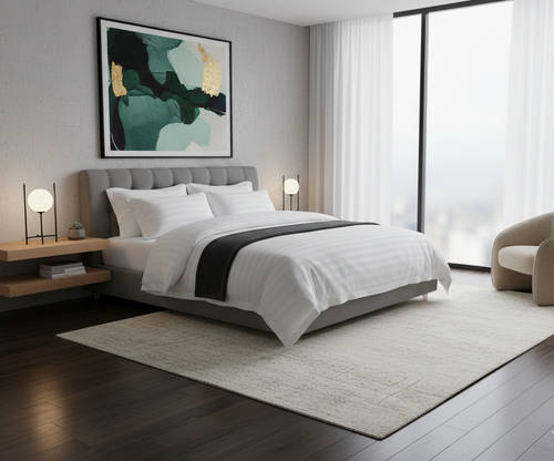 Lenjerie hotelieră din bumbac Damasc satinat, dungă 1 cm, King Size