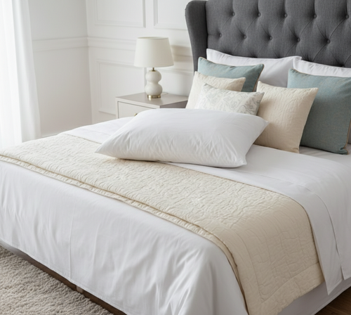 Prosop de baie (covoraș), bumbac 100%, model Greek border, alb